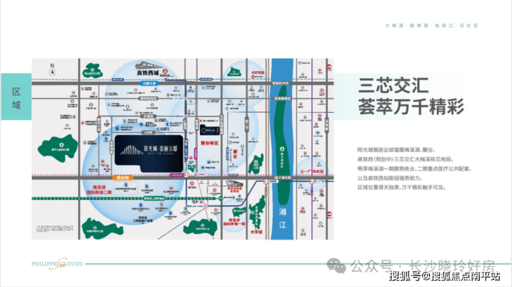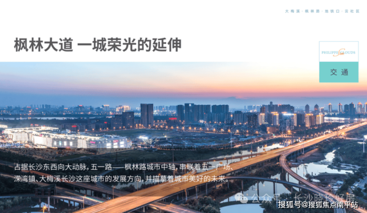 由项目往东依次连接梅溪湖一期,汽车西站,溁湾镇商圈,橘子洲大桥,五一路国金中心,直达长沙火车站,城市黄金商圈、交通枢纽一路贯穿