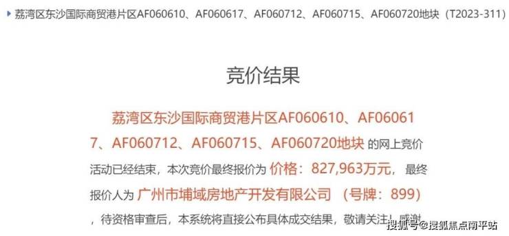 2023年保利底价827963万元(约82.79亿元)拿下该地块,折合楼面价约25713元/㎡(未扣除配建),拿下的荔湾东沙地块项目