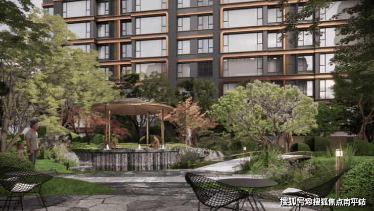 溯源传统文化,以兰亭修禊图曲水流觞为范本,共同绘制出一副天人合一,具有东方雅趣的山水画卷。大区营造以东方视角结合现代美学,注天地于一壶,将天地浓缩在园林中,让有厚度的文化之美赋予景观恒久的生命力。