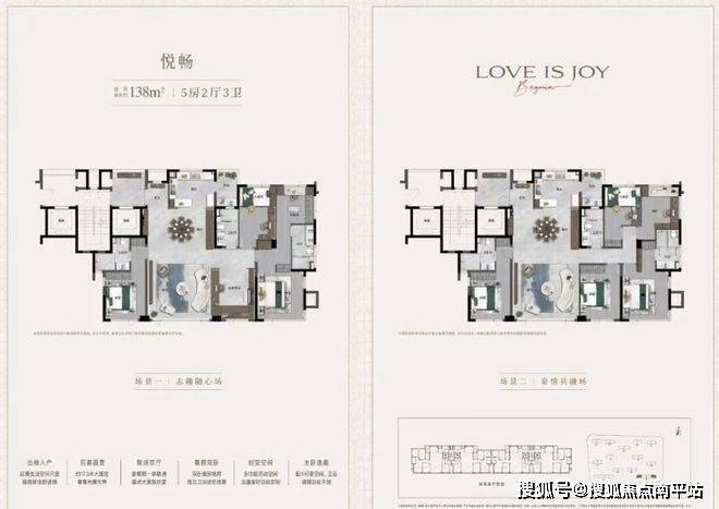 建面约138㎡户型更是将尺度感拉满,5 房 2 厅 3 卫的设计,实得面积超 170㎡,媲美老规 200㎡大平层。17.3 米南向面宽,LDKB 一体化宽厅成为家庭欢聚的核心场域,客厅旁的 X 兴趣空间可化身乐高天地、亲子书房或茶室吧台,让生活有了更多想象。一梯一户搭配 6.2㎡全明电梯厅,入户仪式感与实用性兼备,鞋靴快递随手安放,整洁有序。