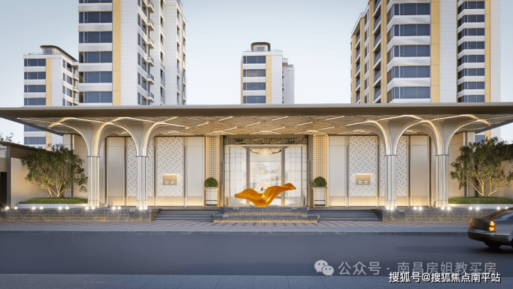 • 约40米鎏金门庭:取滕王阁飞檐之律、柱廊序列之形,是归家的第一道仪仗,亦是身份的象征;