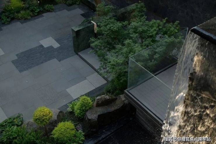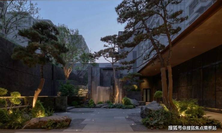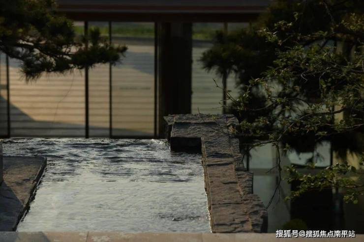 从大堂归家的第一视角场景展现出一幅松间叠瀑的画面,强化入则宁静的氛围感,叠瀑飞溅,层层跌落,激起涟漪舒卷,以自然之形,消弭内心的繁嚣。