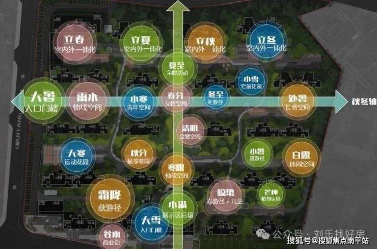 【景观设计】打造“24 时节四季理想家”景观大师易兰规划设计院执笔造景,以“两轴一环三大区”手法,以四季如春为主题,打造“24 时节四季理想家”的双中轴园林。