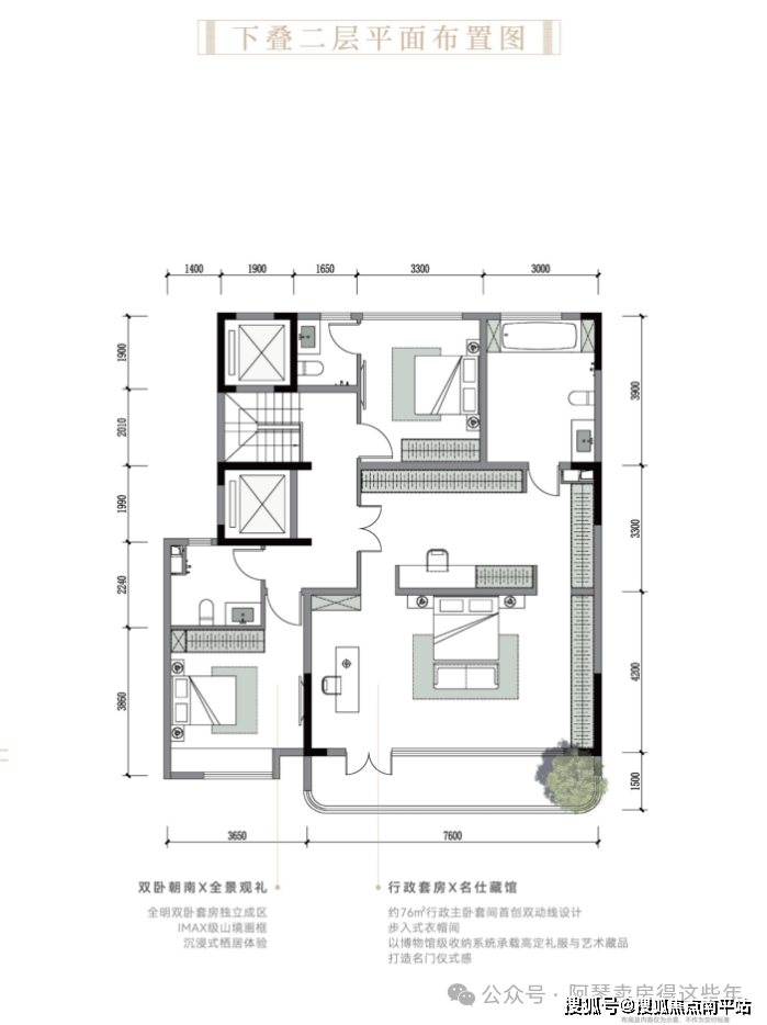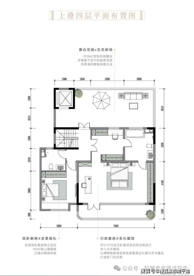 建面约270-380㎡大境揽山叠墅观山映月:建筑面积约275㎡上叠