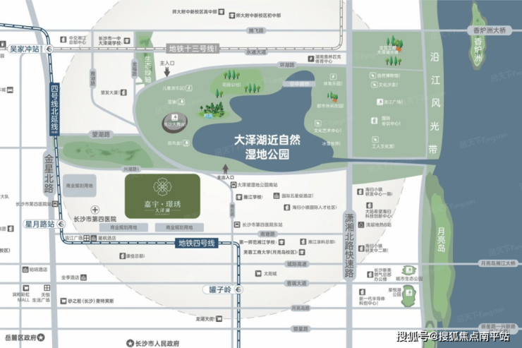 项目配套入读师大附中本部一校两址——师大附中(大泽湖校区)及长沙市一中(大泽湖)学校小学部,地铁4号线金星路东延线站直达小区地下车库,交通便捷。