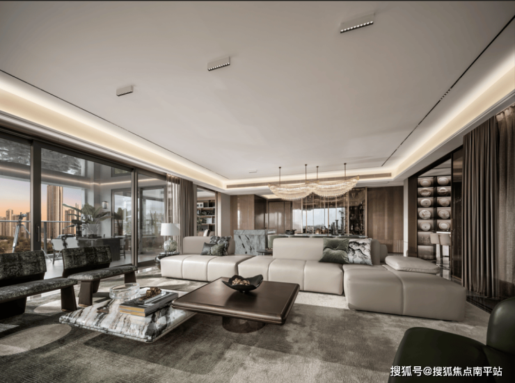 户型设计的核心是“观景”。采用IMAX级巨幅窗概念,最大化开窗面积,确保观景面的极致开阔。窗户的开窗沿边部设置,确保了居中立面视野的绝对纯净与无任何遮挡,将三江六岸的壮丽景色,如同一幅流动的巨幕油画,完整地纳入室内。 “甲板式”阳台——空中的会客厅:创新性地打造了面宽达6.1米、进深4.5米、面积约28㎡的“甲板式”江景阳台。它重新定义了阳台的价值,使其成为家庭生活的延伸与品质生活的秀场。