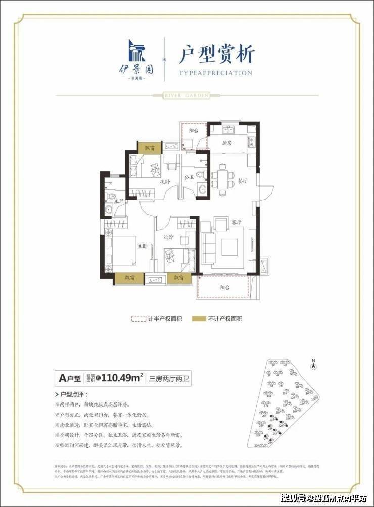 🏯【硬核产品】51万方全板楼滨河大盘,110平米三房纯板式设计,南北通透,双阳台设计,阳光和轻风自由进入厅堂。