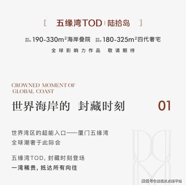 五缘湾TOD陆拾岛,涵盖院墅、洋房、高层,精准匹配不同高端改善需求规划4排建筑,全部都是四代宅户型。项目自带下沉式会所,泳池标配,出门即沙滩,栋栋皆有景。