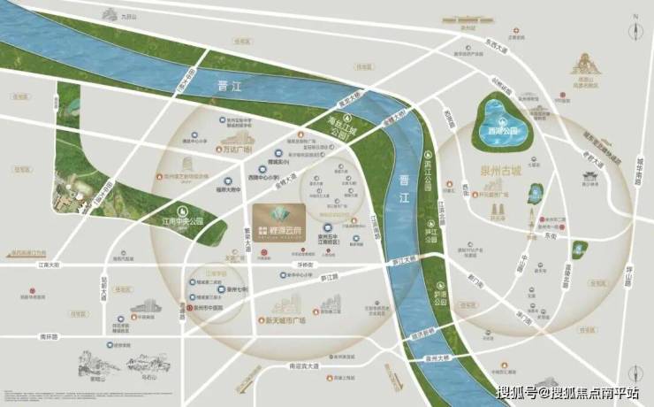 在区位上,项目的优势在于位于繁荣大道旁,对外交通便捷;临近在建中的泉州五中江南校区,近校优势明显;近享鲤城万达广场、新天城市广场双商圈,自带约2万㎡商业。