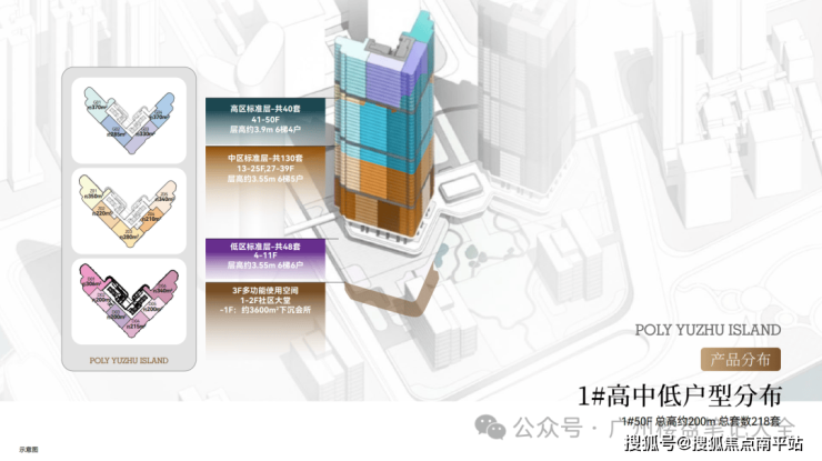 首推1栋大平层,户型为200-400㎡ 在规划上,保利鱼珠岛一共4栋建筑,1栋和2栋为大平层,大约是400多户。 首推的是1栋大平层,高50层,建筑面积大概分为200-300-400平。