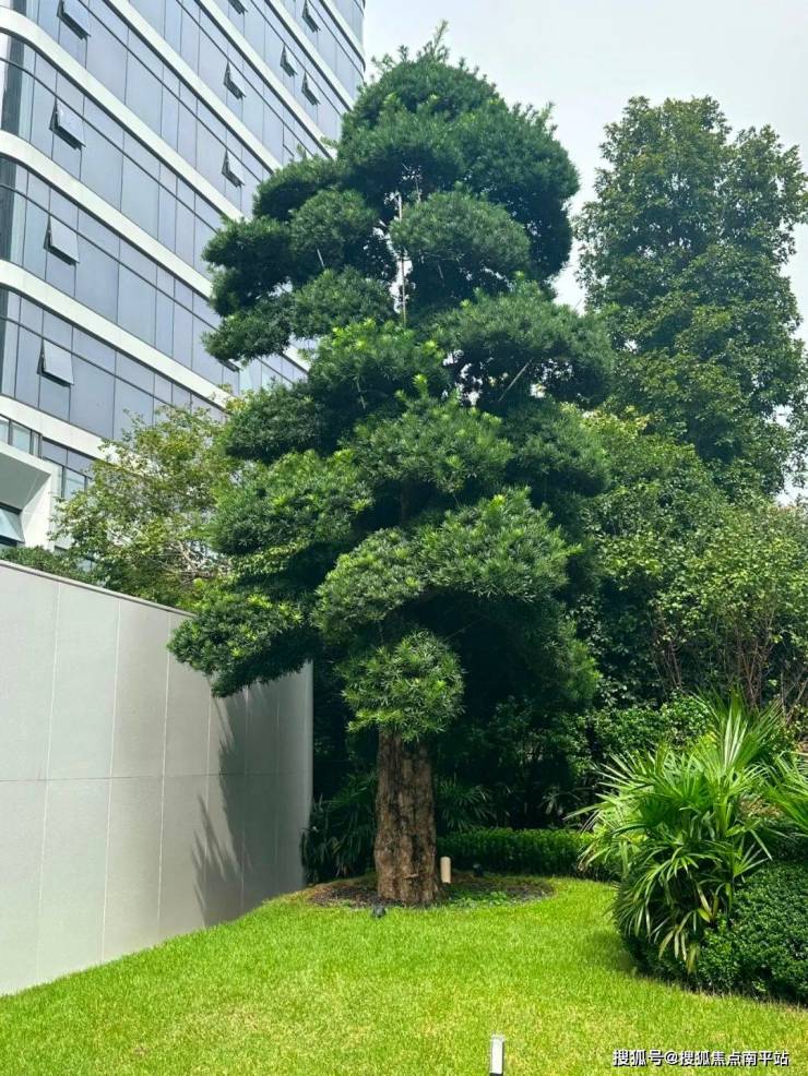 C-ONE组团,罗汉松和五针松的数量也增加了,总数高达27棵。东门两棵罗汉松王,高度约10米,一个成人都无法环抱,堪称当代门神。内部入户大堂前、锦鲤池畔,均可见罗汉松、五针松。