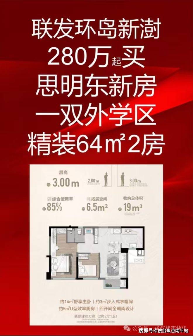 思明前埔新盘—联发环岛新澍,传最新消息,64㎡学区房精装2房总价280万起。