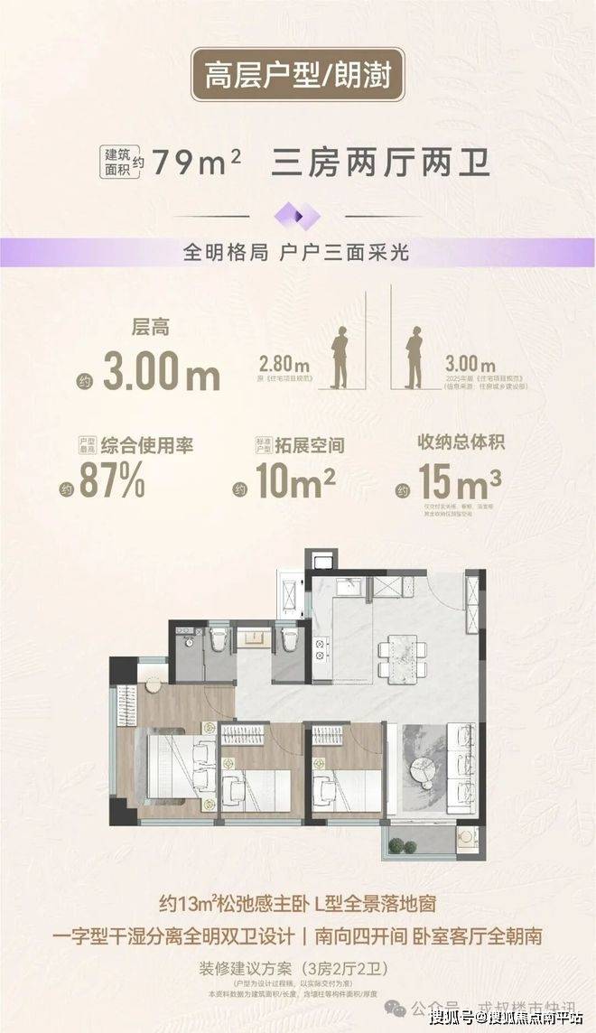 其中64㎡精装两房得房率85%,客厅卧室全朝南,主卧带衣帽间,顶配精装+智慧社区,主打小而精。