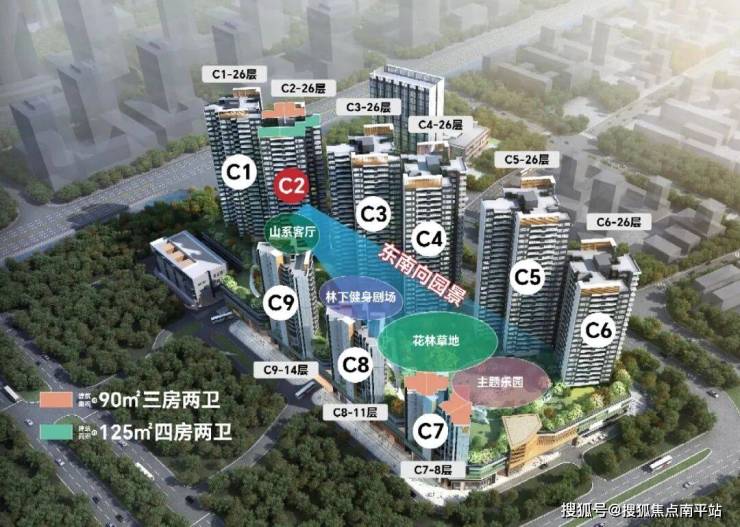 3、南向90㎡产品超宽楼间距,望中心园林,更具私密性;