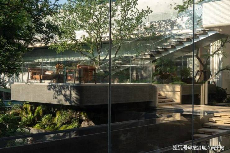 曲折连通的景观楼梯将地下与地上相连,在缓步中奢享双层园林意趣。