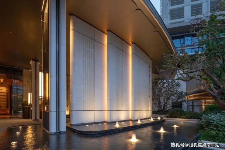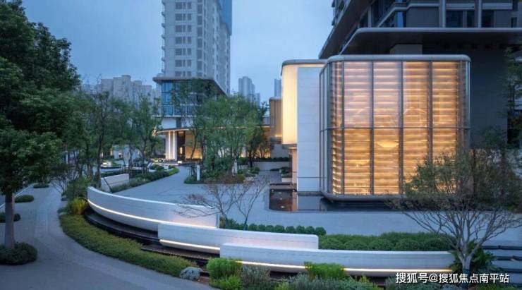 临街景观以碗状景墙层层包裹,围合出阶梯式花园,在繁华的闹市街角开辟一方私享社交花园。伴随着静水叠级、盎然绿意,让日常归家成为一场身心沉浸的优雅体验。