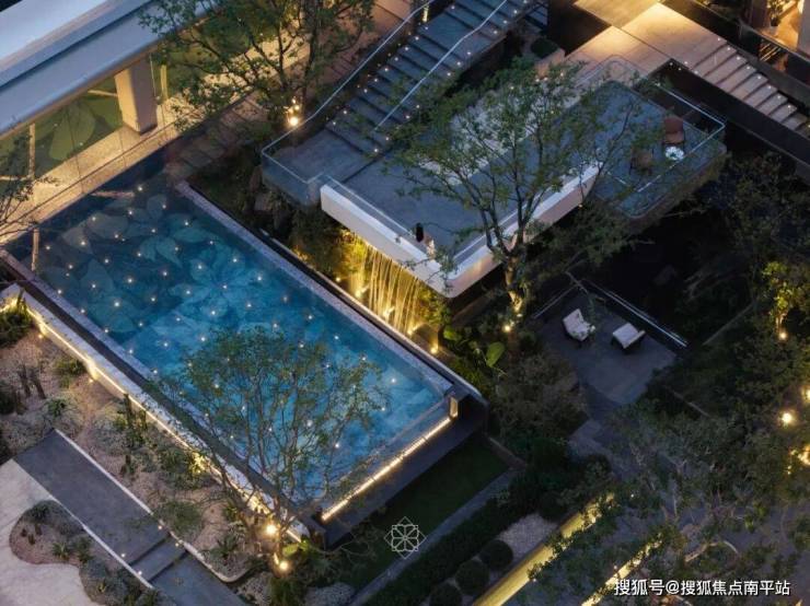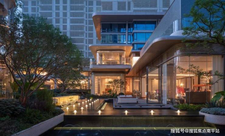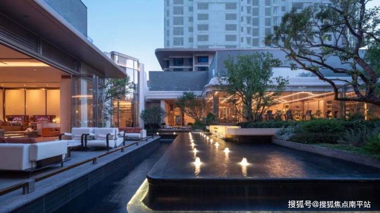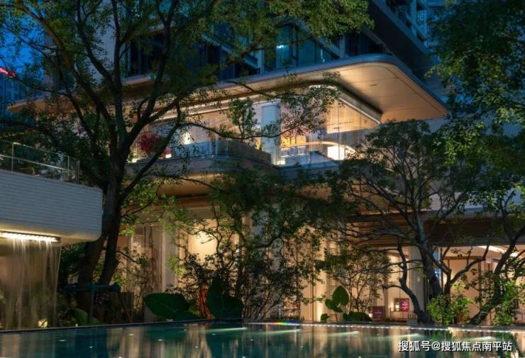 庭院,一方闹市中宁静的绿洲。走进这片园林,城市的喧嚣被隔离在外,树影青葱,镜面水景层叠错落,如同玲珑的百宝盒,洒落在山涧中。多层景观台地弱化场地高差,形成层次丰富的立体景观;四面悬浮感玻璃盒子环绕,模糊室内外边界,山水之色与精奢生活在其中无缝衔接。