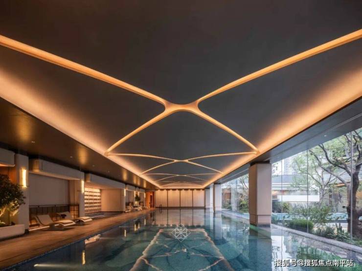下沉会所集合书吧、洽谈区、健身房、泳池、茶室等功能,在庭院四周两两对望。室内艺术延续建筑美学语言,构筑独属于用户的精神栖居。