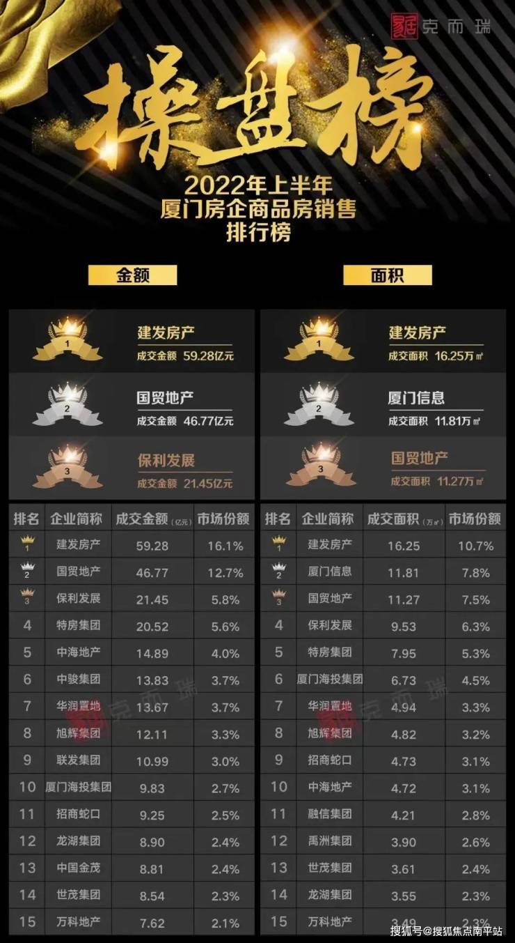 根据克尔瑞机构统计,今年上半年,厦门建发再次荣登销售金额和销售面积双冠王!