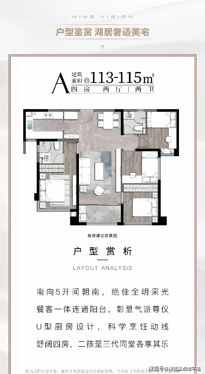 五缘灏月是用带景观的大户型去拉价格,然后小户型去做性价比。同样地,建发湖畔九境定价逻辑类似,相信也会出现5字头的单价房源!湖畔九境在产品设计上同样别具匠心,出现了113-115平四房户型!