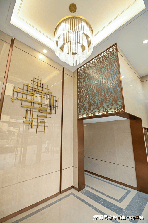 比如单元门大堂挑高设计,搭配造价不菲的水晶吊灯,尽显尊贵体面。