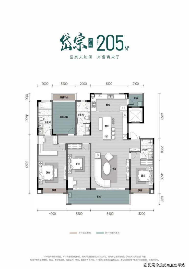约200%户型使用率,前后双庭院,带星空露台。