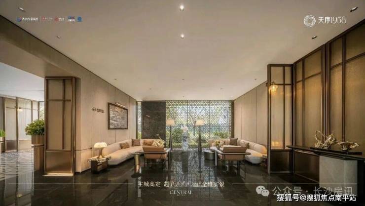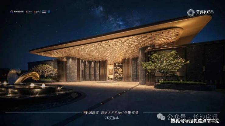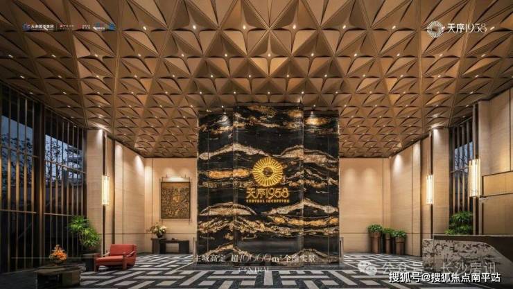 >三序:ZUI尊贵的归家排场一序:三进门庭“云珮叠水”礼宾广场,以长沙博物馆镇馆之宝、源于西汉的“双面透雕龙凤纹玉环”为灵感,高定门第;超6米高星曜挑檐,3000片鎏金鳞纹铝板,耗费2000小时手工拼接,淬炼匠心门庭;约5.8米挑高“奢金”礼序大堂,巴西进口宇宙金奢石打造双面照壁,揭启归家序曲。