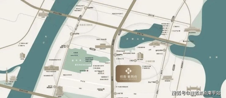 项目凭借10分钟生活圈辐射SKP、楚河汉街、泛悦汇,且地铁2/7号线螃蟹岬站F口仅约150米。