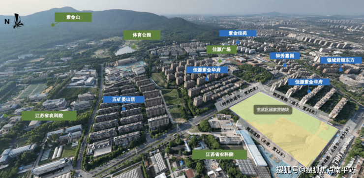 南向直线距离约900米就是紫金山,站在项目位置看得非常清楚。