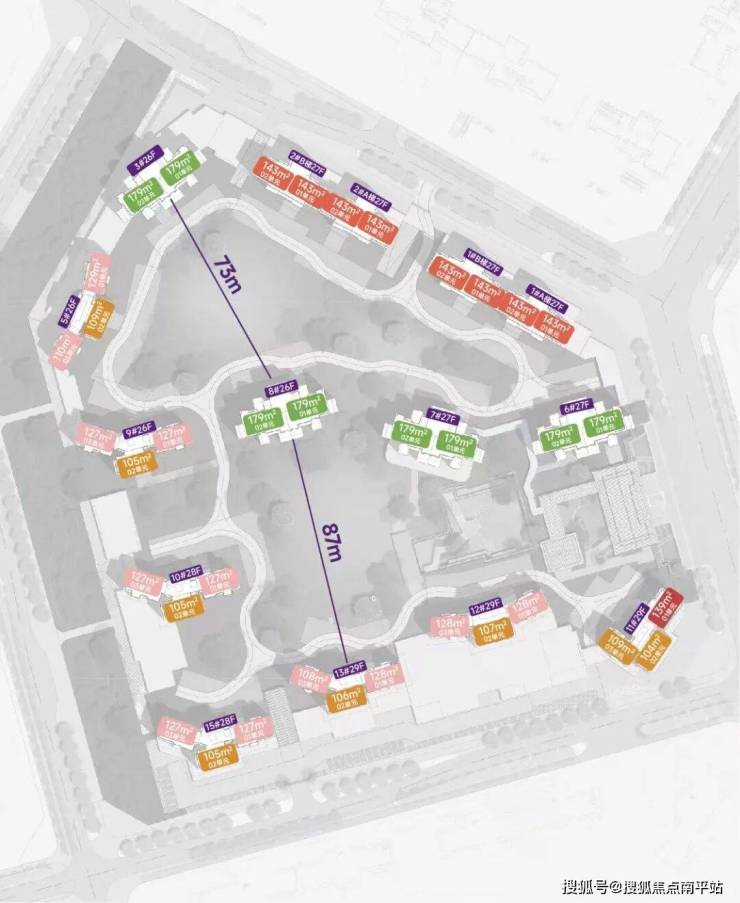 项目规划约979套高层住宅,产品涵盖104-179平全维面积段。主力户型为127-128平四房、其次143/179平四房。