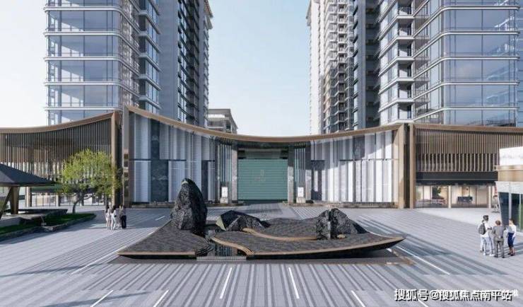 🌟长沙罕有景观式前广场,以湖湘山水意境入景搭配二进制恢弘大门,运用多种奢石,打造封面级城市地标;