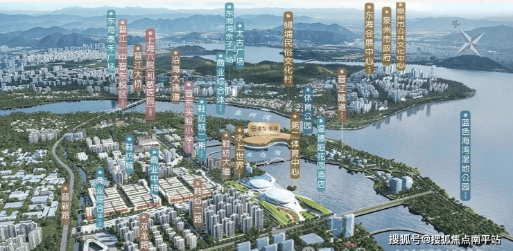 就拿建发·缙湖来说,在现有已出让地块中,位置是最好的。周边望眼过去皆是代表泉州的国际名片:蓝蓝泉州湾、晋江第二体育中心、国际鞋纺城、360亩生态湖、上海六院和敏医院(在建中)等重磅级地标拱卫,让其成为资源交互的焦点。
