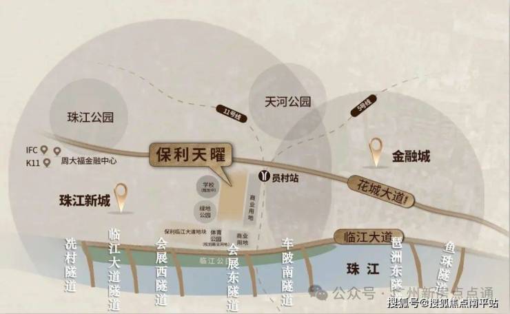 ◎ 缝合“珠金琶”一体化 天曜傲居核心点位珠城-金融城(东西向):项目北侧花城大道规划东扩南移,项目南侧临江大道隧道已通车——广州主要城市干道 ,占据着珠江新城千亿级的市政配套,布局了城市顶级城市建筑群,汇聚了广州鼎豪住宅;双主干道将贯通珠江新城与金融城,禀赋核心资源向东贯通的城市动脉; 珠城、金融城-琶洲(南北向):政府规划8条过江隧道,目前已建成车陂南隧道,项目东边的会展西隧道预计明年2026年通车;