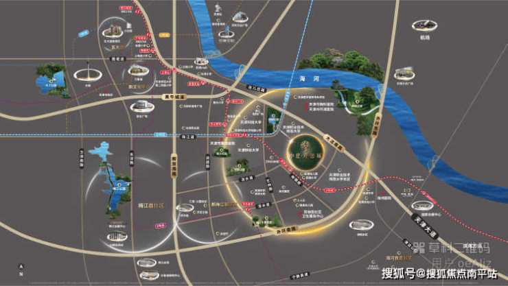 项目紧邻天津宜居主轴——大沽南路,周边云集和悦汇、梅江环宇城、永旺梦乐城、山姆会员店等众多商圈。醇熟的资源与都市的繁华于此交相辉映,勾勒人生理想生活蓝图。