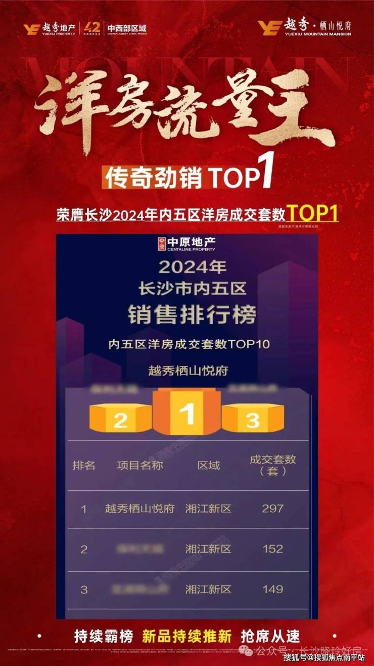 根据湖南中原研究院公布的数据显示,越秀栖山悦府荣膺长沙2024年内五区洋房成交套数TOP1,流量王者,持续霸屏,好房当燃不让!
