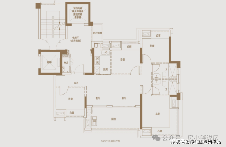 主卧也做了L型窗做赠送,南北侧的卧室厨房,都做了飘窗赠送,整体的得房率不错。