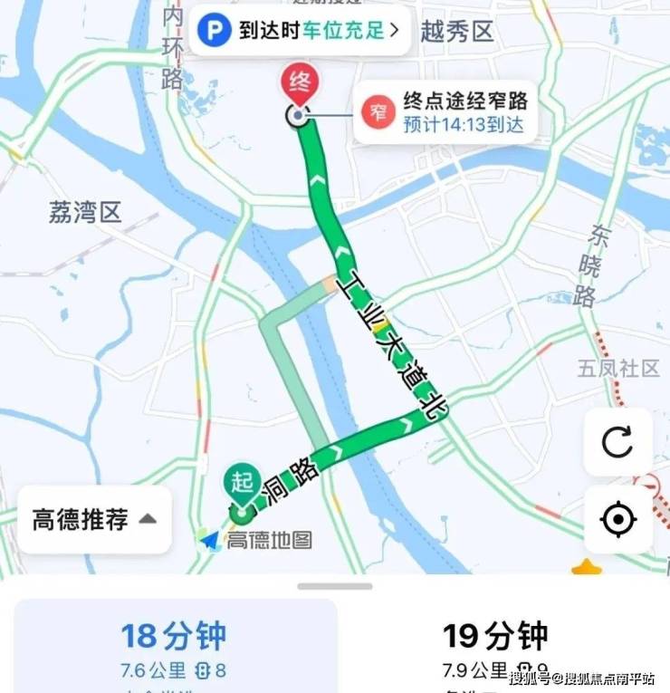 自驾去珠城:鹤洞路转昌岗中路,再转东晓路至内环,全程13公里,耗时24分钟左右。