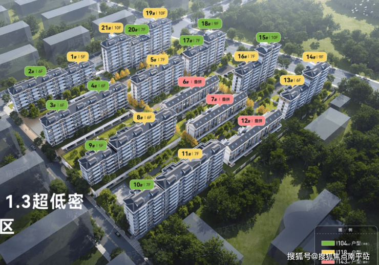 1.6的容积率规划了两个品类,3栋叠拼,其他为6-11层到顶的洋房。