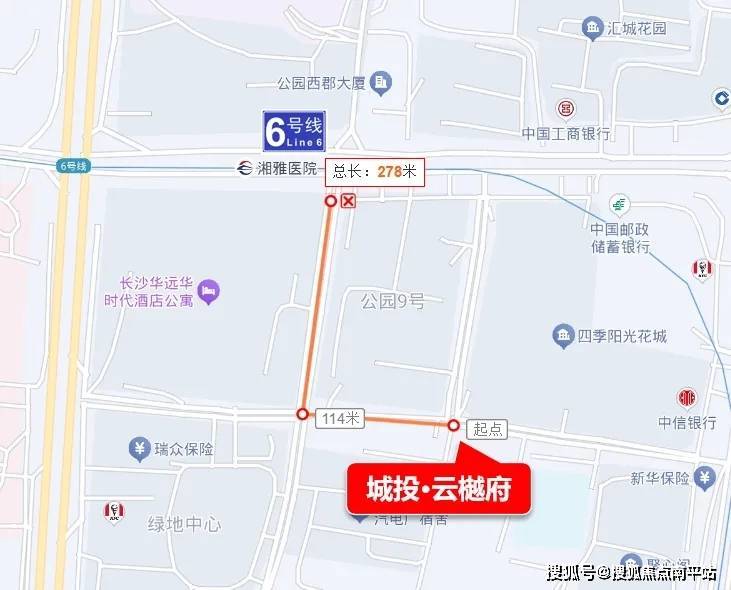 城投·云樾府距离北侧地铁6号线湘雅医院站仅约200多米,是真正的地铁盘。