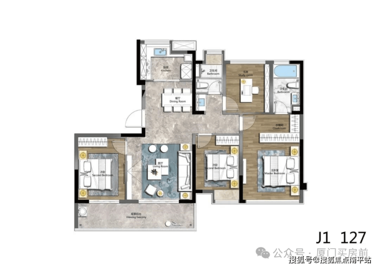 J1户型-约127㎡-四房两厅两卫