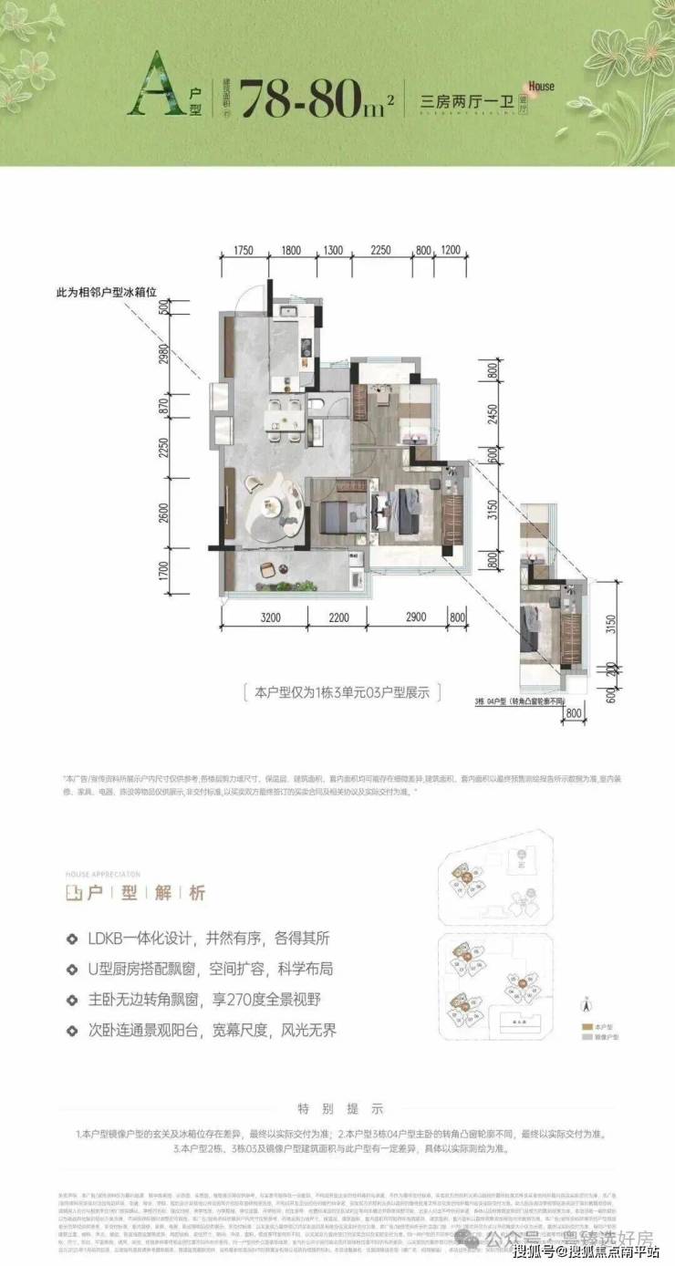 首次推首 北地块1栋3单元,约80-92㎡ 3房,共195套,新规使用率高达96%-105%!