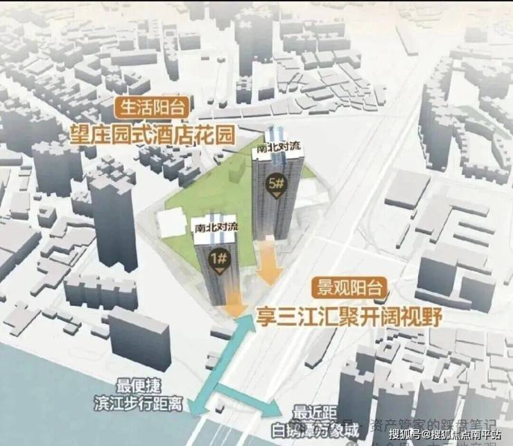 首推 1 栋与 5 栋两栋楼位于地块北侧:这两栋楼其不仅最近距白鹅潭万象城,且拥有最便捷滨江步行距离,景观阳台享三江汇聚开阔视野,生活阳台望庄园式酒店花园,具备多重优势。