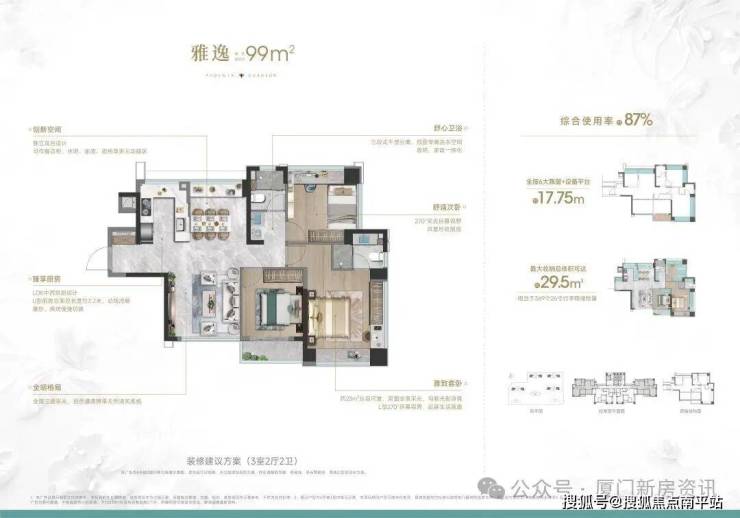 约99㎡边套奢阔3房2卫=市面115㎡