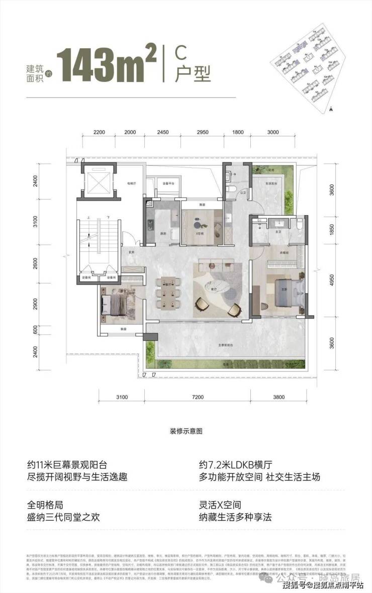 【面积区间】建筑面积约110㎡、131㎡、143㎡、195㎡