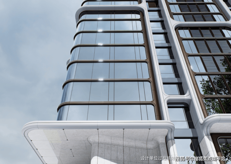 在户型上,为了更大的观江面和南向采光面,设计全景舱户型,圆弧形立面线条。