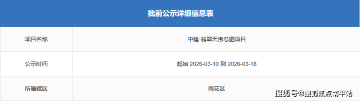 近日,长沙市自然资源和规划局发布“中建·翡翠天序总图项目”批前公示。