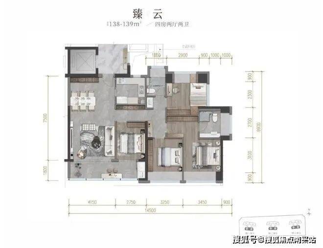 建面约138-139㎡四房两厅两卫