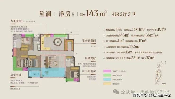 低密洋房:约103-143平极致低公摊纯洋房,13-15%超低公摊率,远低于市面传统项目标准