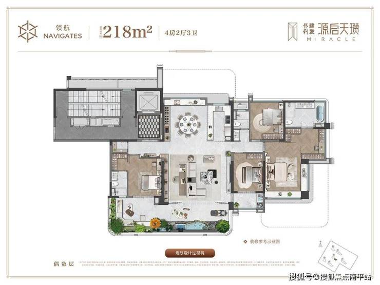 再看建面约221㎡户型,类独梯入户+约6㎡电梯厅,给足归家仪式感;约91㎡LDKG无界社交厅,容纳峯层生活;享南北环绕式双空中花园或独享南向超大空中花园,让自然成为生活的底色。