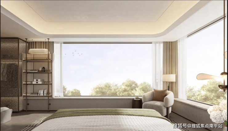 部分户型采用无柱飘窗设计,配合大面积玻璃幕墙,提供开阔的景观视野。